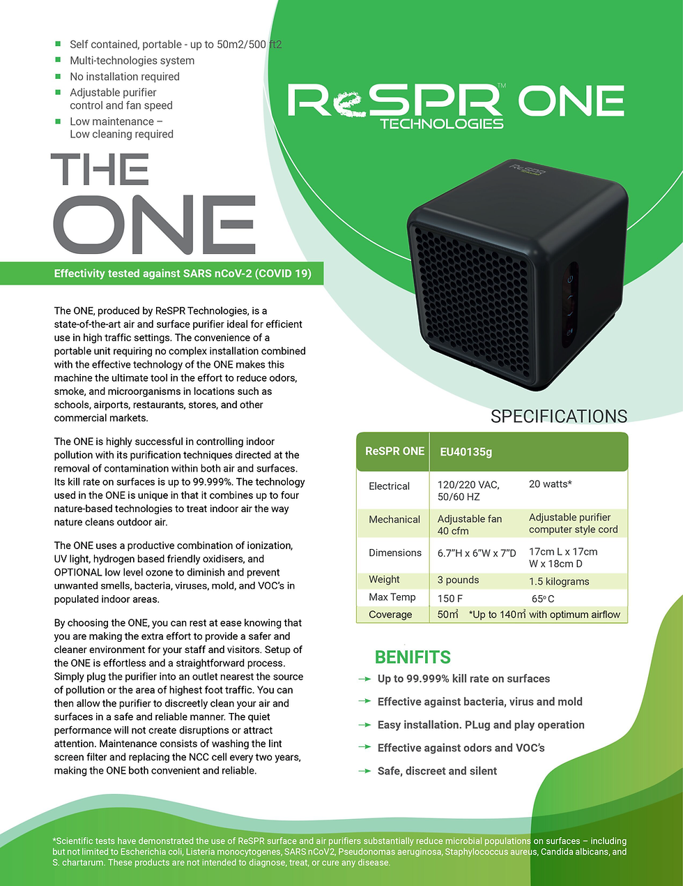 Home > Products > ReSPR Air & Surface Purifiers > One